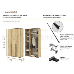 Шкаф 3-х створчатый с зеркалом Фиеста New, Дуб крафт белый / Графит